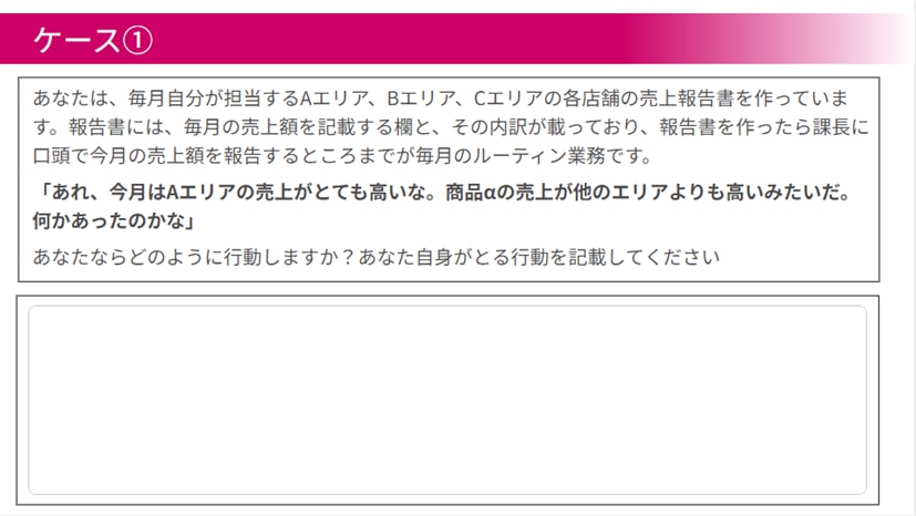 営業部の具体的な業務シーンを題材とした複数のケースワークで段階的に練習