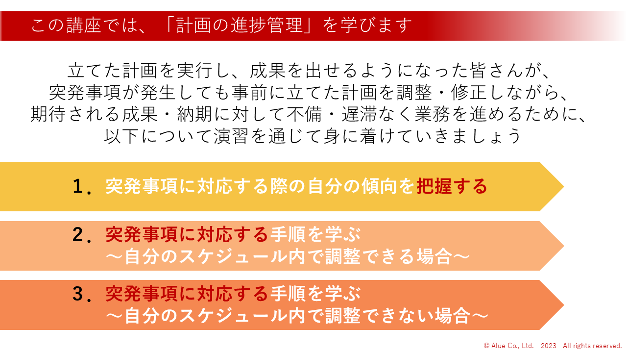 3ステップで、突発事項への対応スキルを段階的に身につける仕組み