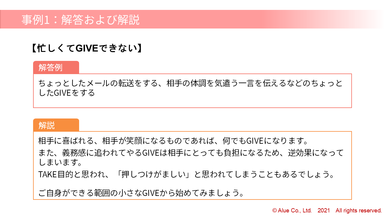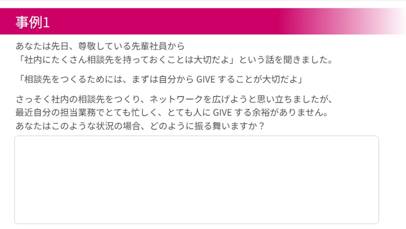 4つの具体的な事例を通じて、実際の場面での行動を考える演習
