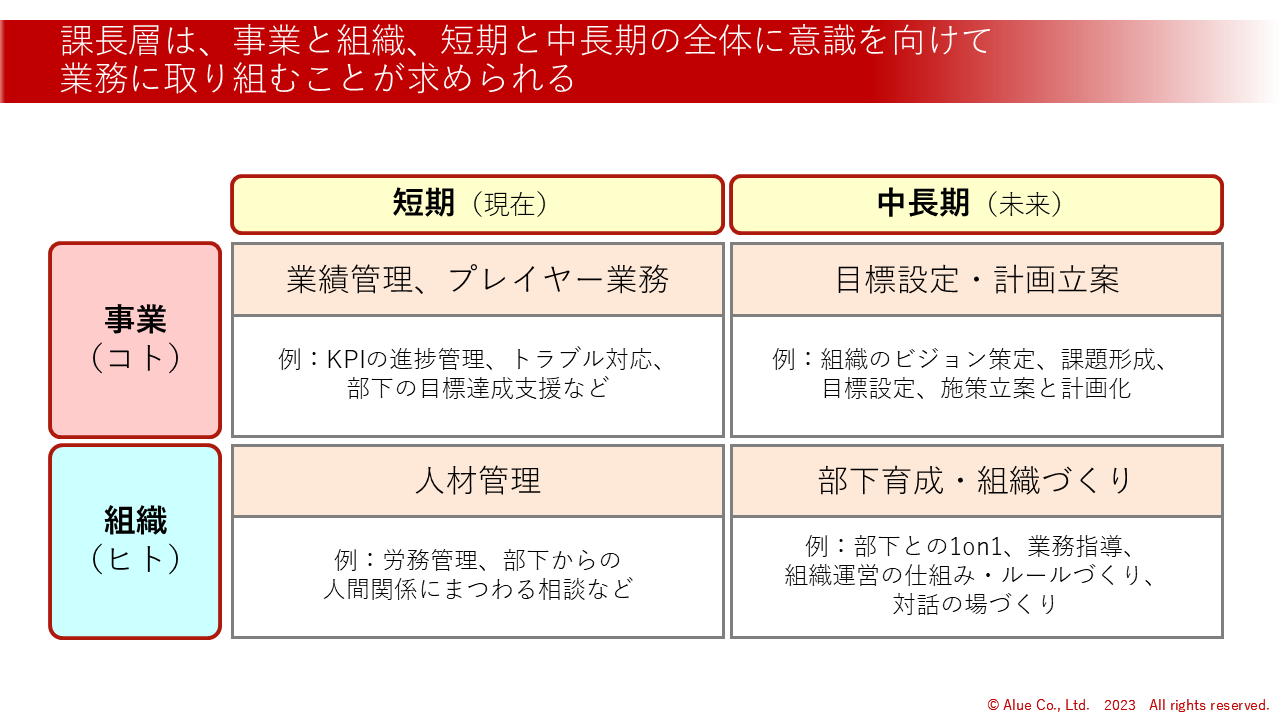 課長層の役割理解 | プレイヤーとの違いを明確化 |