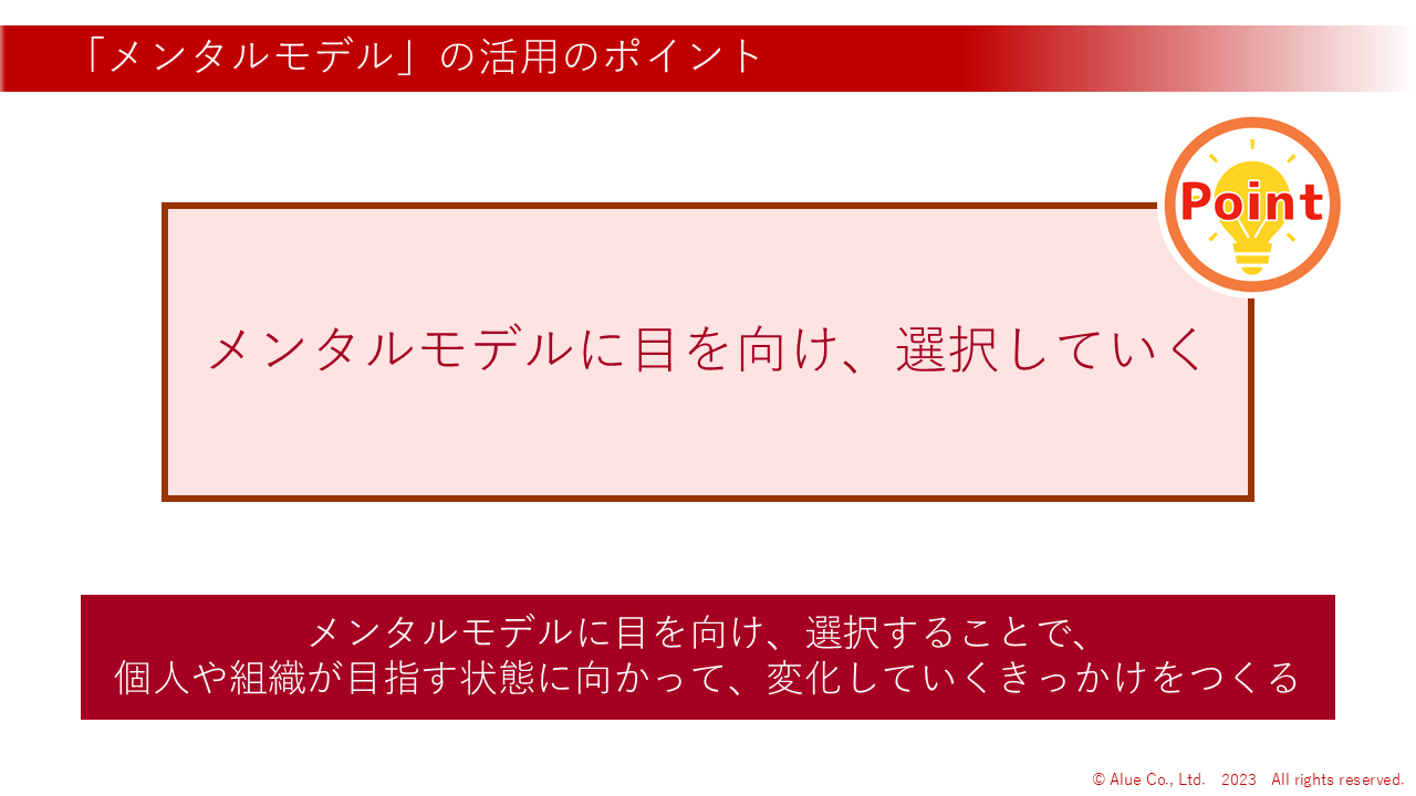 メンタルモデル | 行動の前提となる価値観・信念を理解 |