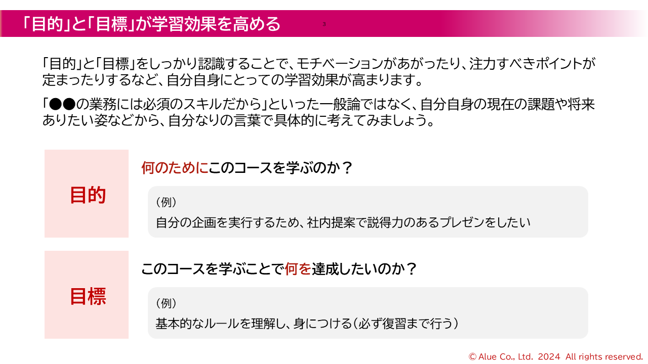 2 | セットアップワーク | セルフリーダーシップを学ぶ「目的」「目標」を言葉にする | 演習 | 10 |