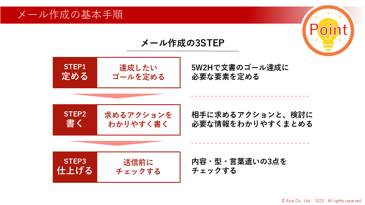 メール作成 | 5W2Hで目的を明確化し、相手のアクションを促す |
