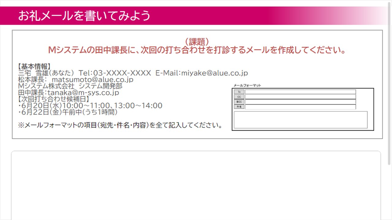 3 | お礼メールと謝罪メールを書く(各1問) | 演習 | 20 | |