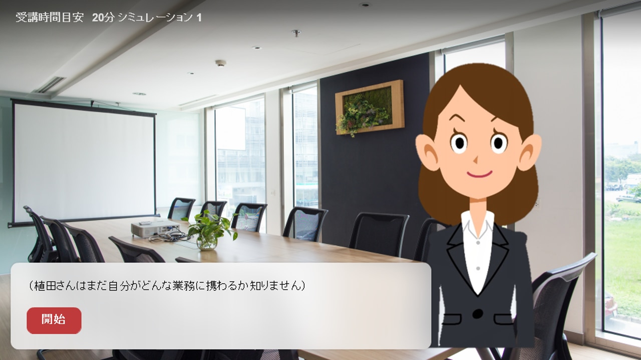 7 | 新人にティーチングする場面で、どのようにティーチングを進めていくか会話を選択肢から選んで進める(×2問) | 演習 | 10 | |