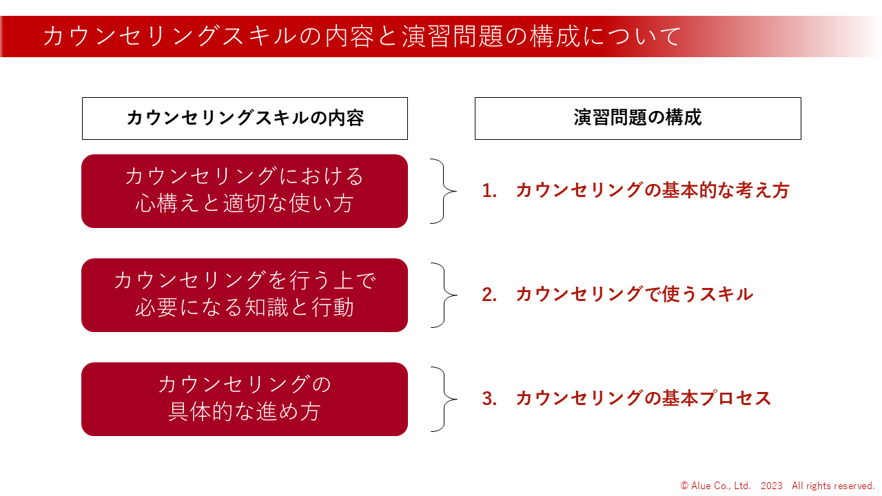 3 | カウンセリングとは何か、カウンセリングスキルについて学ぶ | スライド | 5 | |