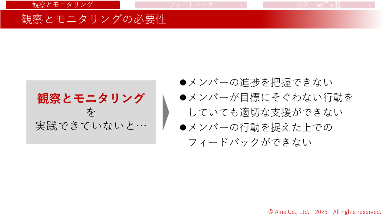 適切な観察・モニタリングにより、チーム全体の目標達成率が向上する