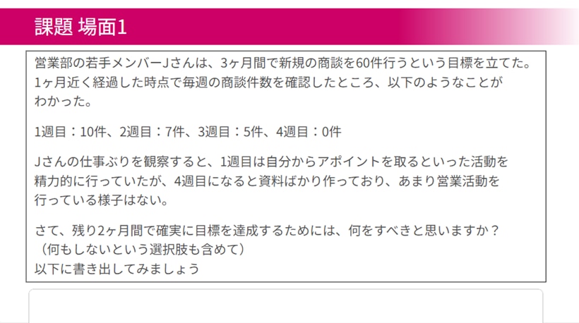 職場で実際に起こりうる複合的な問題場面を通じて、統合的な判断力を育成